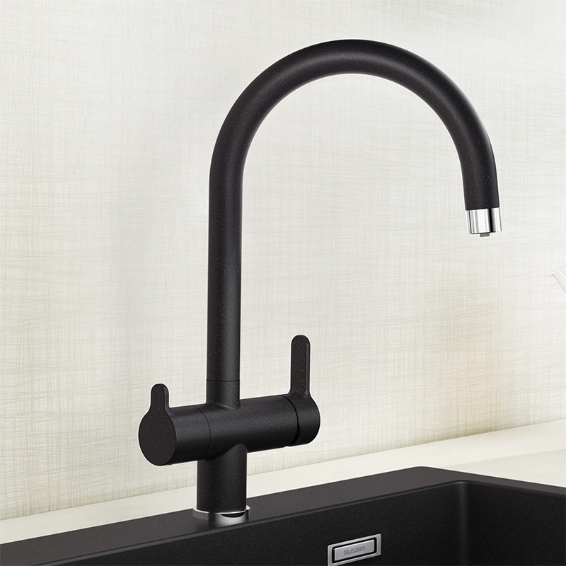 Bateria de apă potabilă BLANCO FONTAS-S II oferă confort maxim în bucătărie. O inovație absolută: gura de scurgere din robinet cu conexiune la filtru. Noutatea este convenabilă de utilizat, de exemplu, pentru a umple o mașină de cafea sau un ceainic. Confortul unui orificiu de extragere pentru apa de la robinet este deja familiar și solicitat de milioane de clienți – cu ajutorul acestuia, puteți spăla cu ușurință vase mari și este mult mai convenabil să curățați chiuveta. Apă curată fără impurități. BLANCO prezintă primul mixer de filtrare din lume cu o gură de scurgere. Cele mai solicitate funcții de robinet sunt acum disponibile într-o ofertă unică BLANCO FONTAS-S II.