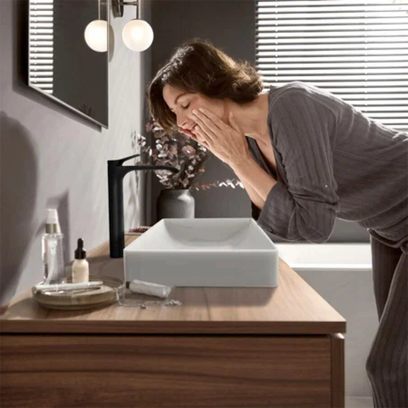 Vivenis citează experiența fascinantă a unei cascade cu un model larg de pulverizare, transformând spălarea mâinilor și a feței în momente de relaxare în mijlocul vieții de zi cu zi agitate. Cu AirPower, cel mai larg spray din gama Hansgrohe este îmbogățit cu aer și făcut deosebit de blând și luxos.