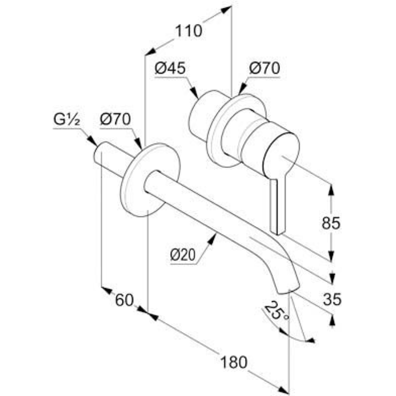 - Baterie încorporată monocomandă pentru lavoar, pentru montaj mascat, cu 2 treceri