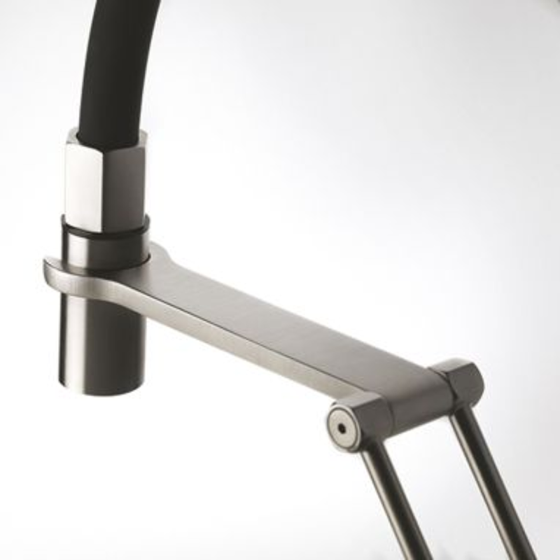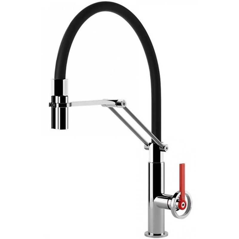 Monocomandă de bucătărie Gessi Officine Volantino 60205, cu pipă pivotantă și manetă laterală.
