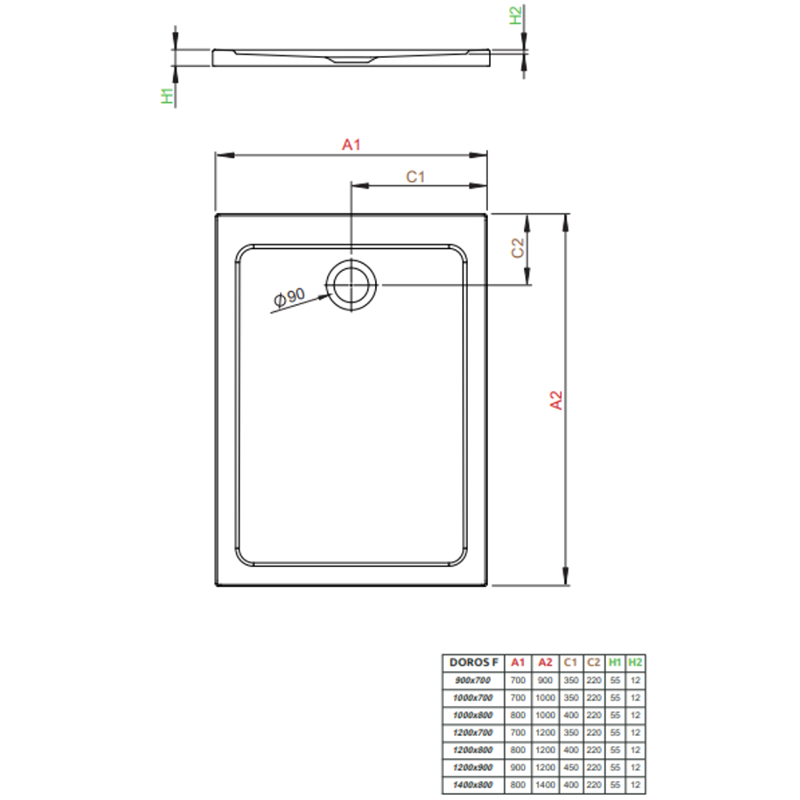 Cădiță de duș acrilică DOROS PT culoare și mărime la alegere