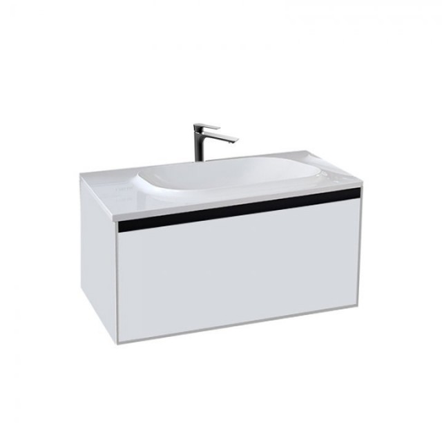 Mobilier din placaj lăcuit și PAL premium. Lavoar din marmură turnată cu sifon inclus. Sertare cu închidere moale, cu pereți subțiri și mînere metalice.