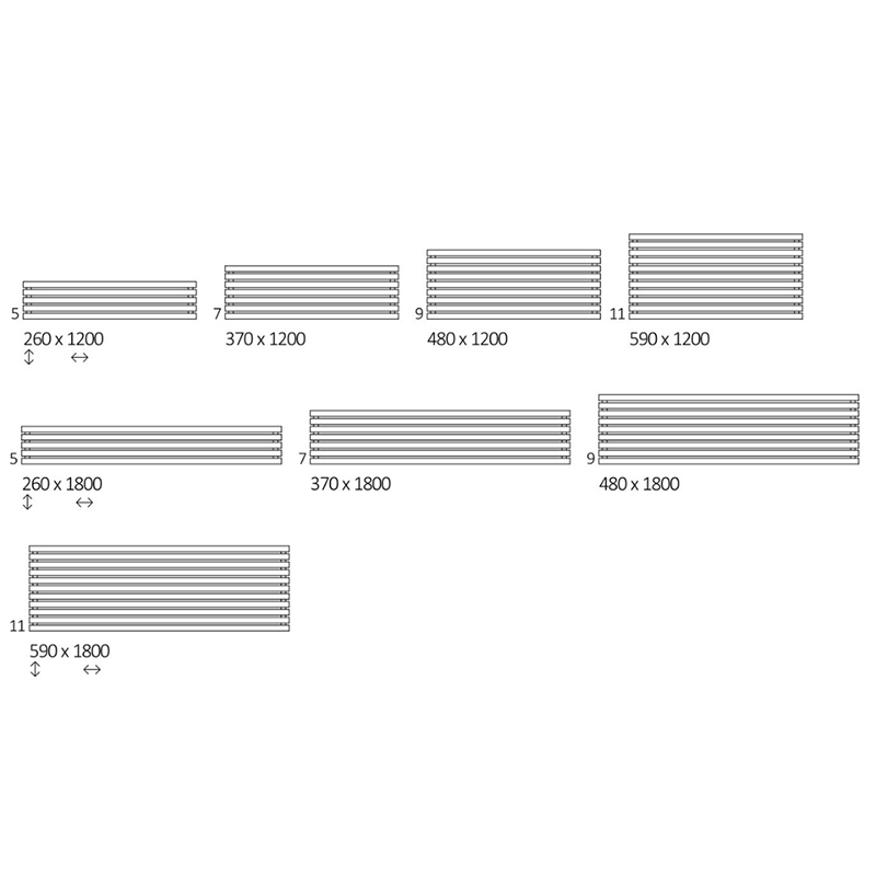 Radiator orizontal Terma ROLO Room H, mărime și culoare la alegere