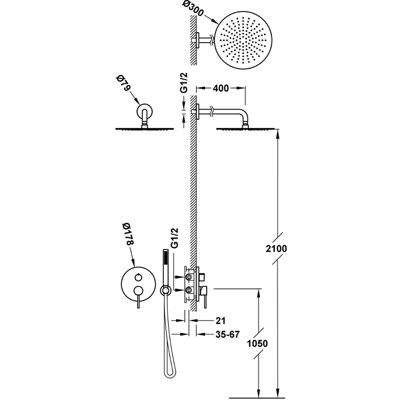- cap de dus fix: Ø 300 mm