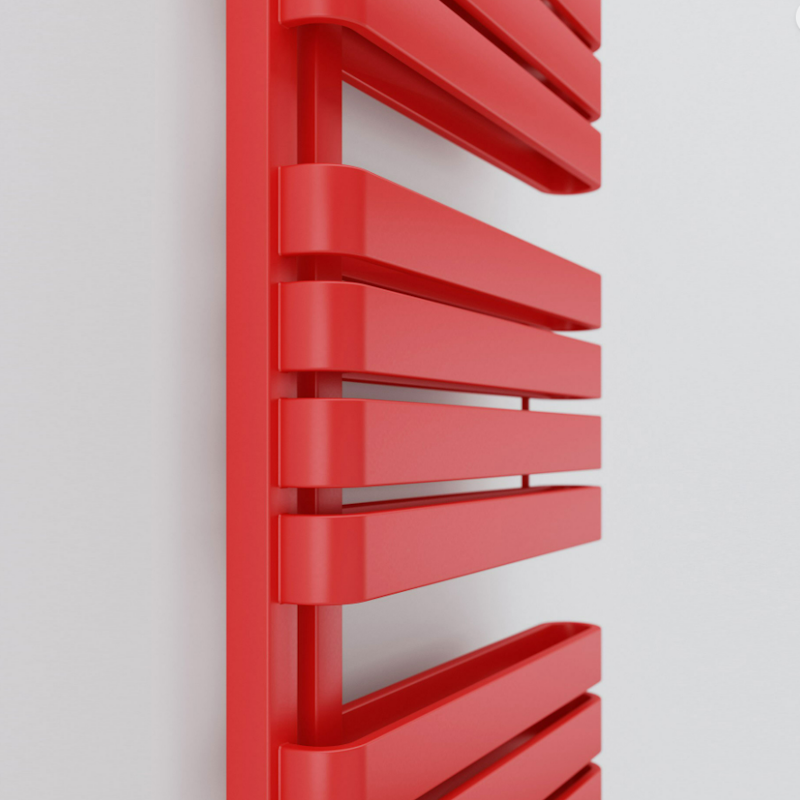 Uscătorul de prosoape electric WARP S cu forme simple și laconice se integrează perfect în designul unei camere de baie. Datorită amplasării neobișnuite, unilaterale, a colectorilor, un radiator simplu de baie capătă o expresie complet nouă. În ciuda construcției asimetrice, corpul rămâne stabil și echilibrat vizual. Spațiile largi dintre secțiunile de țeavă și puterea mare de încălzire permit încălzitorului să fie folosit în mod liber ca uscător.
